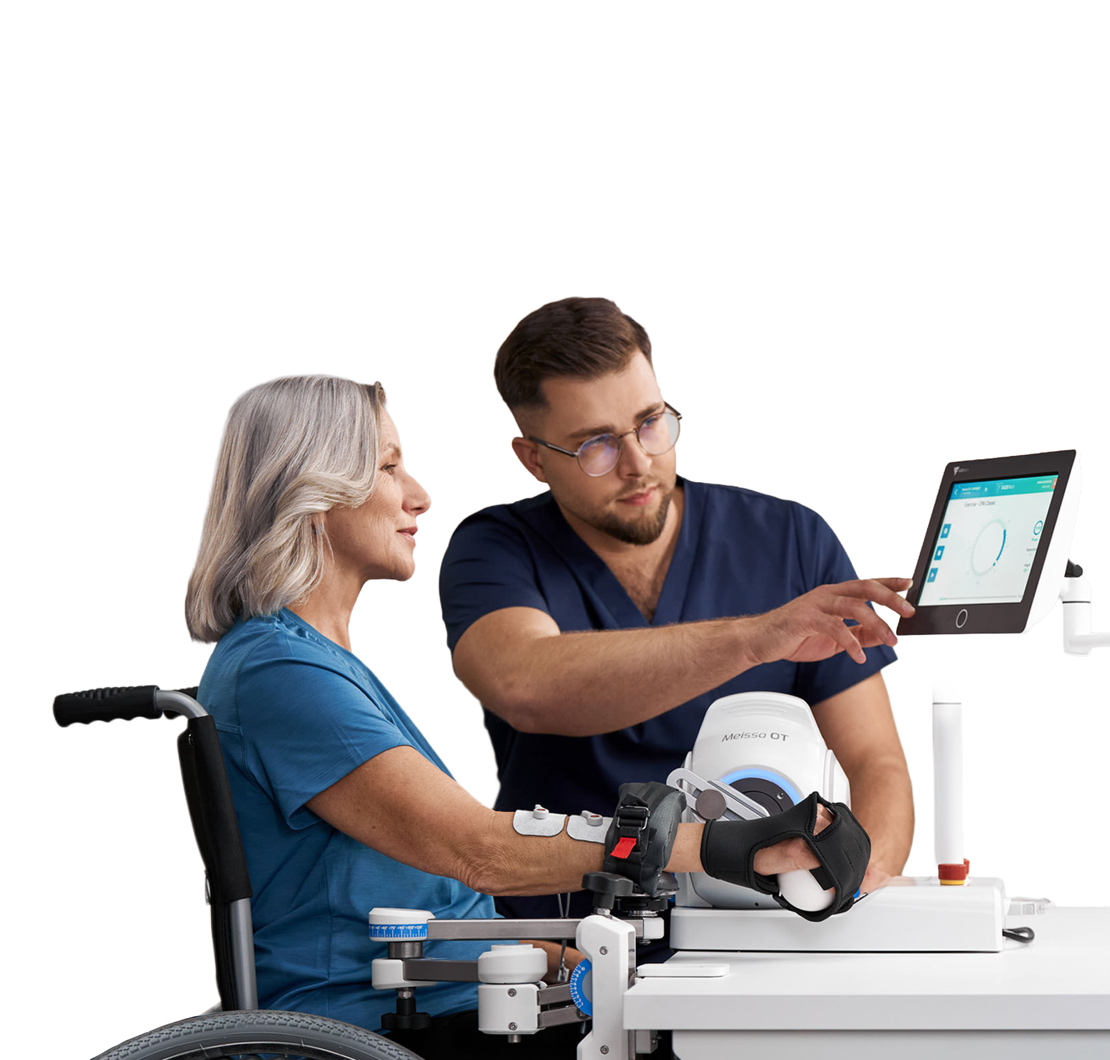 Als hochmoderner Therapieroboter wird Meissa OT in der neurologischen und orthopädischen Rehabilitation der oberen Extremität (Arm- und Handtraining) eingesetzt und integriert dabei sowohl Elektromyographie (EMG) als auch Elektrostimulation (EMS). Sein wesentliches Alleinstellungsmerkmal ist die EMG-ausgelöste Bewegung: bereits